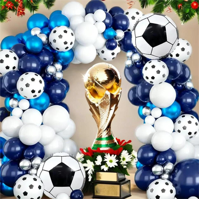 WorldCup Soccer Party Balloon Set Soccer Trophy Decoration Balloon Set Gray & Blue Latex Balloon Chain Set Decorations